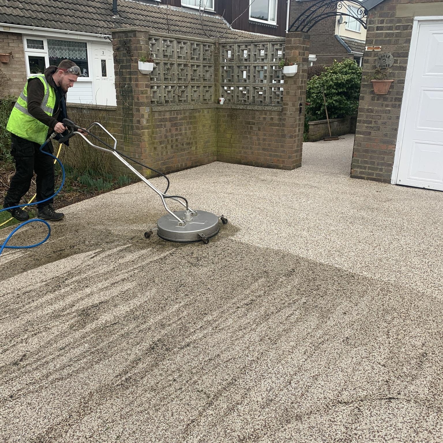 Although the process differs slightly from block paving to pattern imprinted concrete to tarmac etc, the basic principles of driveway cleaning remain the same. We use an advanced cleaning system on all driveways, eliminating and minimising mess. The cleaner is ensures the correct flow rate for the specific surface type: